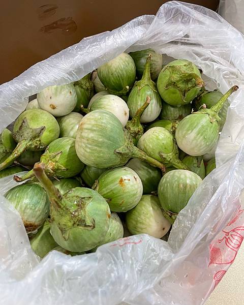 一個像小洋蔥一個像綠色豆豆 外型、顏色都跟台灣茄子不一樣
